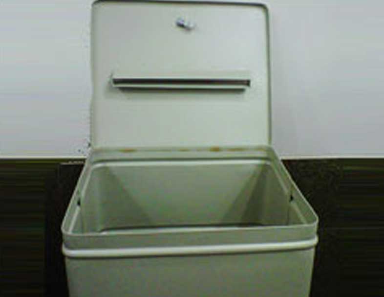 Locked Data Containers are used to store confidential papers prior to shredding. Its steel body with horizontal stiffening ribs & internal locking ensures papers once inputted cannot be retrieved unless one has the key to the container. Rubber wheels of dia. 200 mm with a handle fixed at the rear side makes it convenient to handle the container.