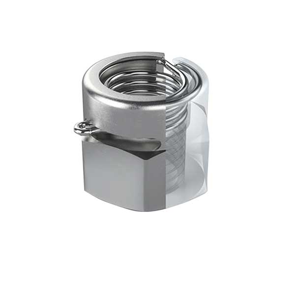 TYT Locknut incorporates a special grade spring into the nuts body. When the bolt comes in contact with the spring, it expands and puts clamping pressure on the bolt. The tension of the spring prevents the bolt from rotating in the reverse direction. To release the bolt from the nut, one needs to release the tension on the spring by sliding the hook provided in the nut. This feature makes TYT Locknut have repeated reusability unlike nylock nuts.